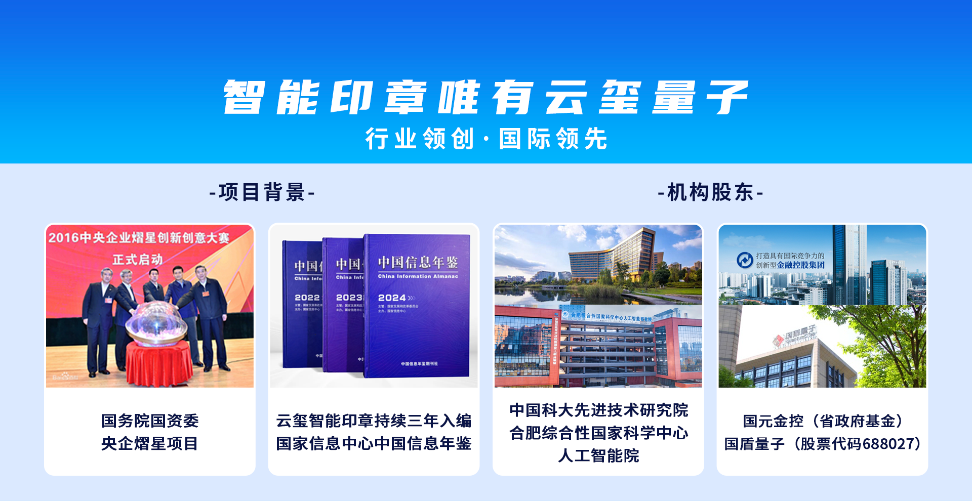 云璽量子是合肥市量子信息產(chǎn)業(yè)重點(diǎn)企業(yè),國(guó)家信創(chuàng)工委會(huì)成員企業(yè),中國(guó)信創(chuàng)500強(qiáng)企業(yè)。主營(yíng)業(yè)務(wù)包括量子安全智能印簽、量子安全智能辦公、量子安全云服務(wù),為政企客戶提供量子安全整體解決方案。